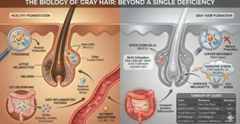 Aging hair is rarely caused by a single deficiency. While mineral shortages can play a role, the primary cause is now understood to be a specific type of stem cell failure. Here is a breakdown of the biological mechanisms behind grey hair, addressing the questions about minerals and Short-Chain Fatty Acids (SCFAs). 1. Is it […]